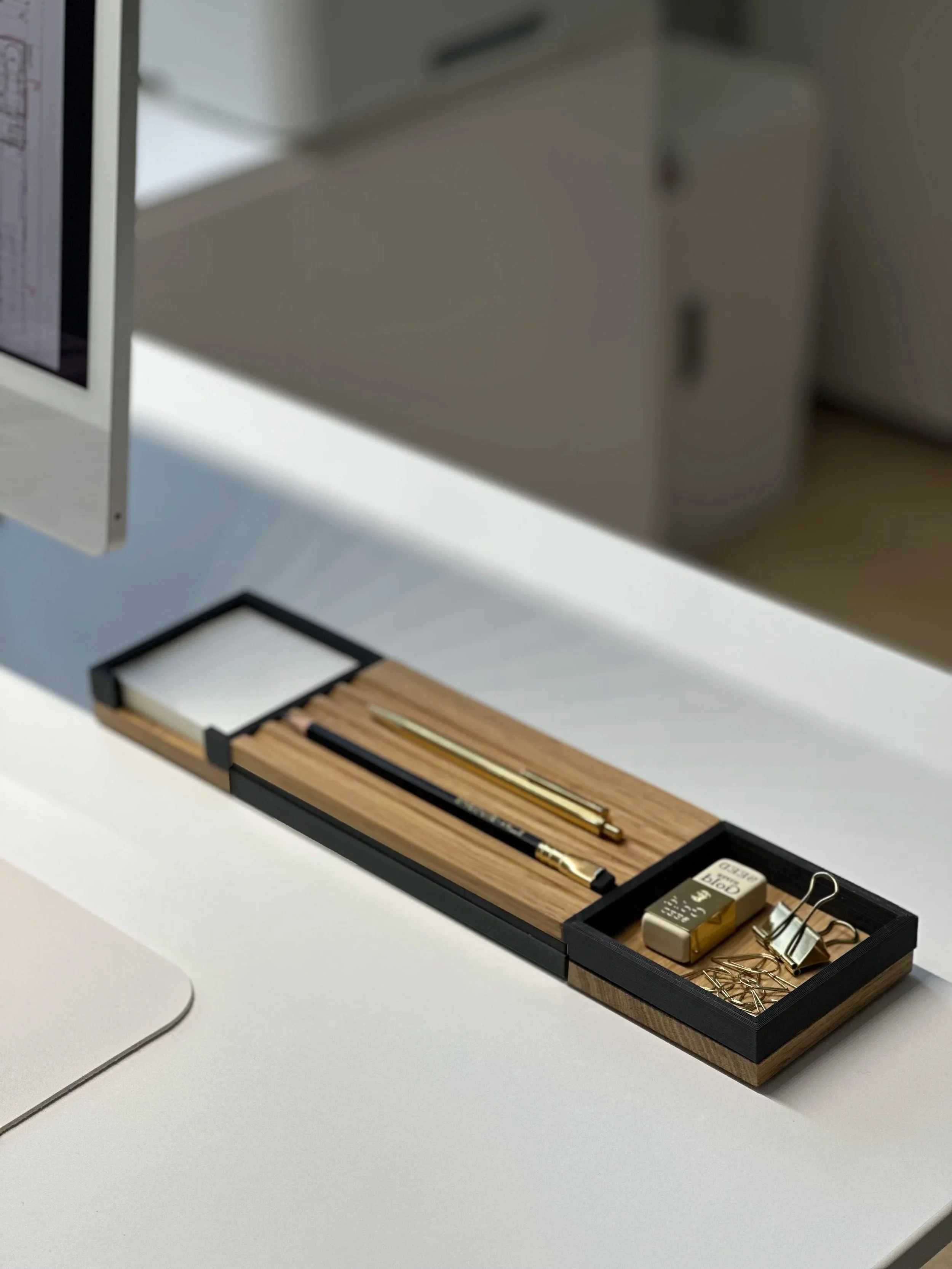 Ein aufgeräumter Schreibtisch steigert die Produktivität, verbessert die Stimmung und schafft Raum für Kreativität. Unser modulares Organizer-System hilft dir dabei, Struktur in deinen Alltag zu bringen – stilvoll und nachhaltig.