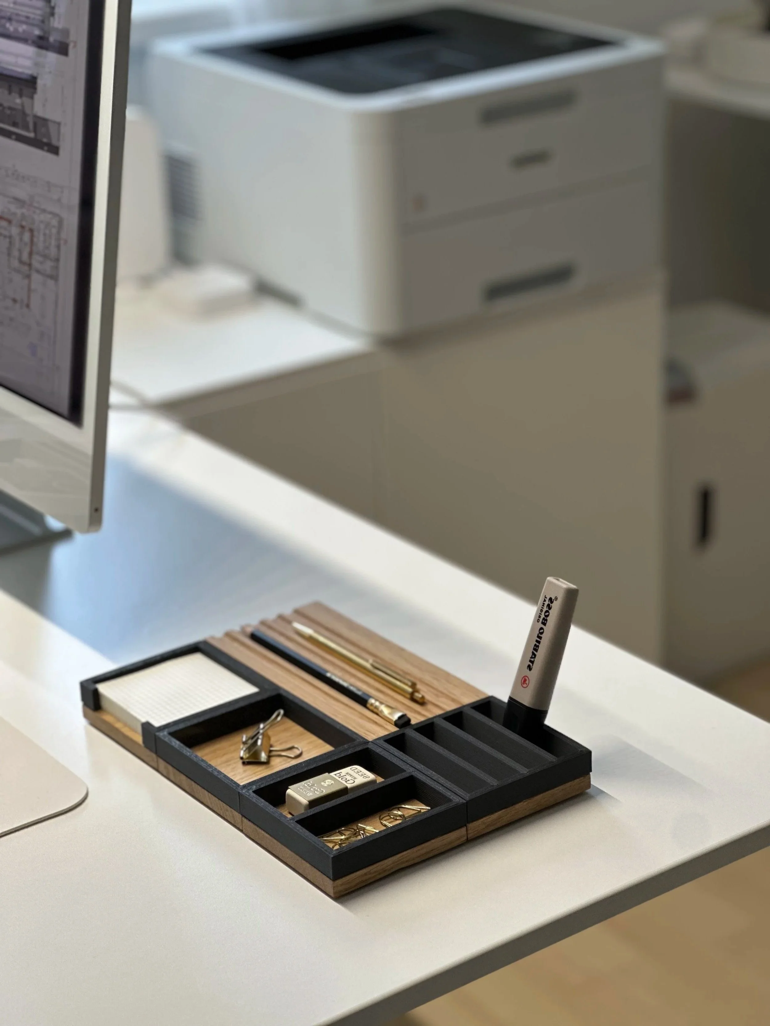 Ein aufgeräumter Schreibtisch steigert die Produktivität, verbessert die Stimmung und schafft Raum für Kreativität. Unser modulares Organizer-System hilft dir dabei, Struktur in deinen Alltag zu bringen – stilvoll und nachhaltig.