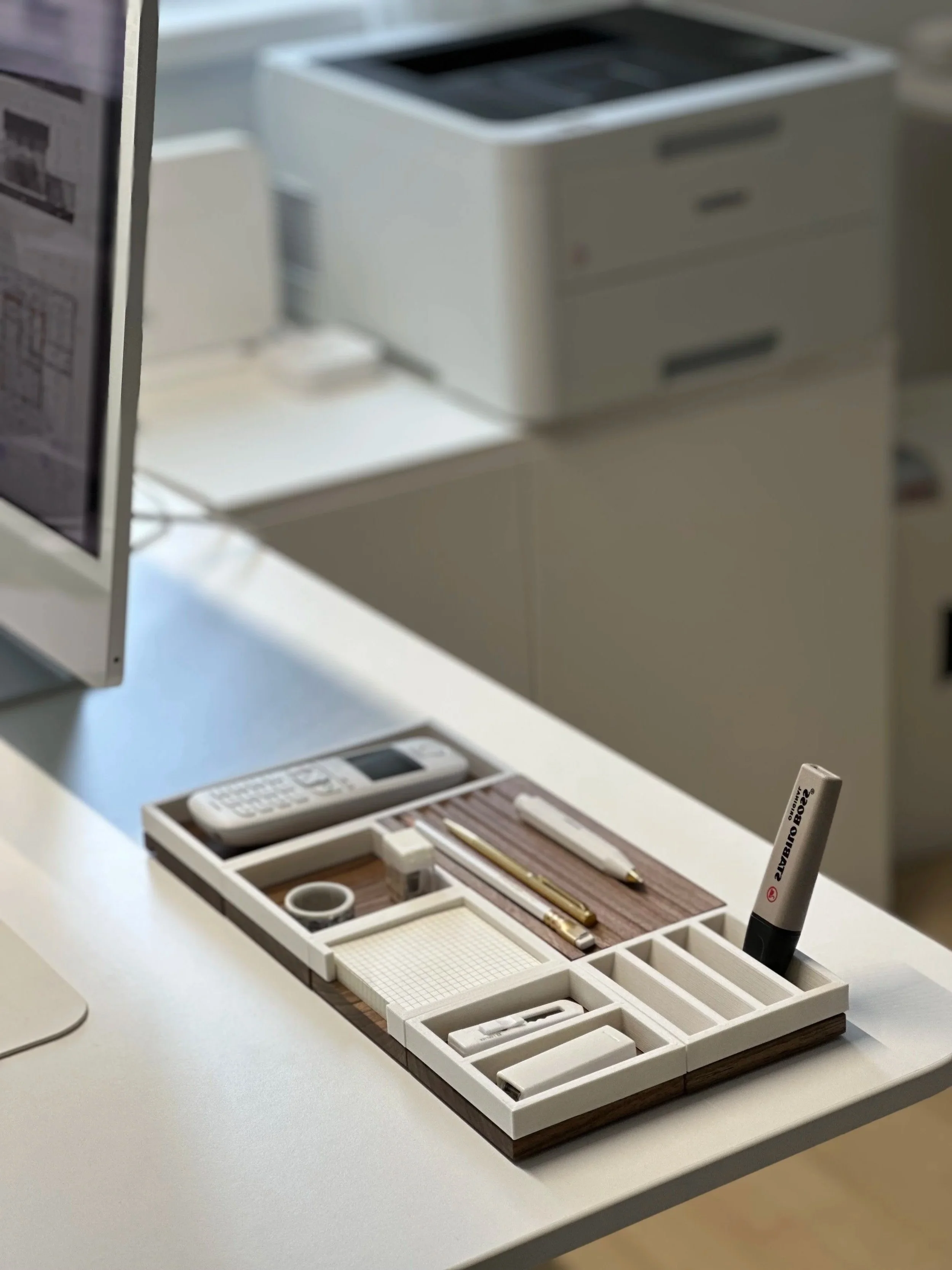 Ein aufgeräumter Schreibtisch steigert die Produktivität, verbessert die Stimmung und schafft Raum für Kreativität. Unser modulares Organizer-System hilft dir dabei, Struktur in deinen Alltag zu bringen – stilvoll und nachhaltig.
