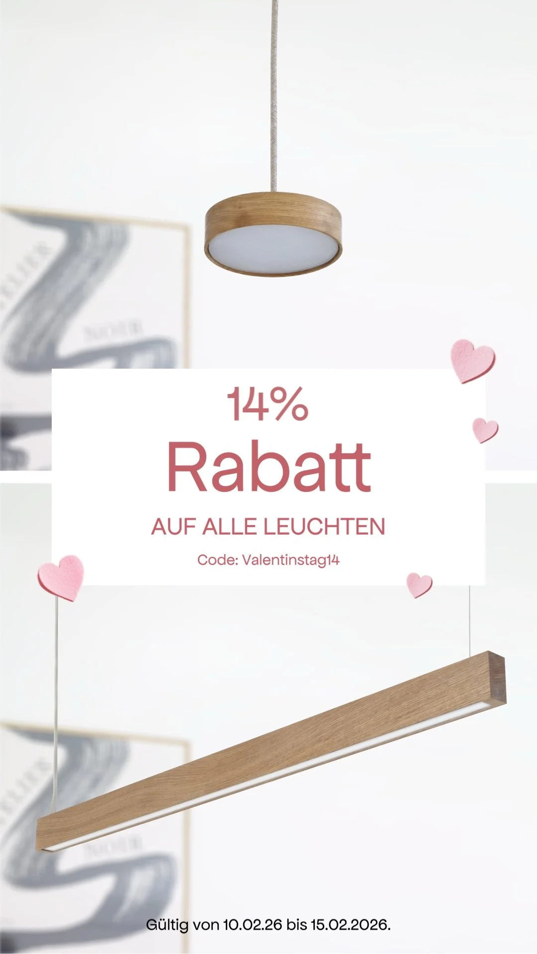 Mit dem Rabattcode Valentinstag14 erhältst du im Aktionszeitraum bis 15.02.2026 zu jeder Bestellung der Serie xS, Serie S, Serie M, Serie L, Serie Office, Lilu xS, Lilu S, Lilu M, Lilu 2 und Lilu 3 eine Rabatt von 14%.
